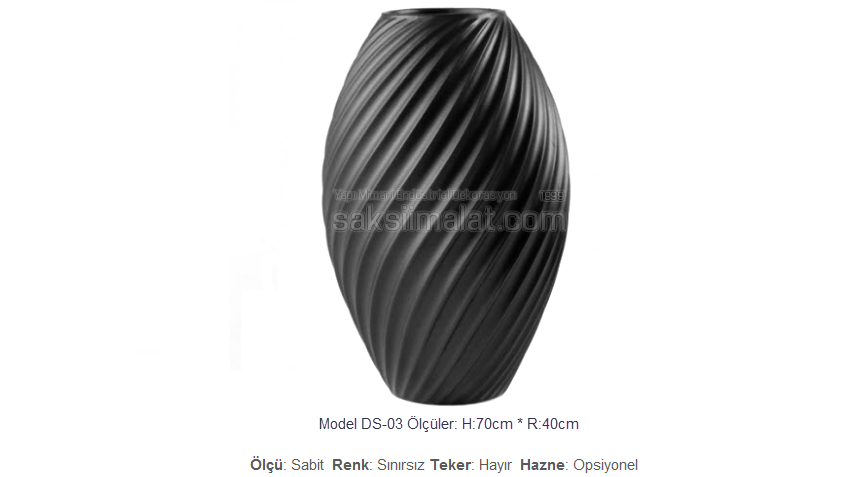 Fiber Saksı model görselinde ölçüler ve genel özellikler hakkında bilgi edinebilirsiniz. Ölçü: Sabit – Seçenekli saksılarımız toplu siparişlerinizde ölçü değiştirilebilmektedir. Opsiyonel: Seçenekli saksılarda projenize uygun ölçüleri gönderebilirsiniz.