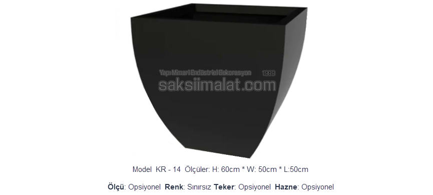 Çoğu insanın saksı kelimesini duyduğunda standartlara bağlanmış çömlek, plastikler veya ahşaplar aklına gelir. Fiberçiçeklik saksılar basit bir dekoratif olmanın ötesinde, hem iç hem de dış mekanlarda çok ihtiyaç duyduğunuz her yere hayat ve renk katmak için şık ve pratik bir çözümdür. Zarafet ve incelik yaymak için tasarlanmış basit ama şık kare model saksılarımızla bitkilerinizi ön plana çıkarın. Biraz hayat katmak için yürüyüş yollarına, kaldırımlara işletme kapılarına teraslara bahçelerde sergileyin.
