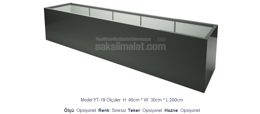 Fiber Saksı model görselinde ölçüler ve genel özellikler hakkında bilgi edinebilirsiniz. Ölçü: Sabit – Seçenekli saksılarımız toplu siparişlerinizde ölçü değiştirilebilmektedir. Opsiyonel: Seçenekli saksılarda projenize uygun ölçüleri gönderebilirsiniz.